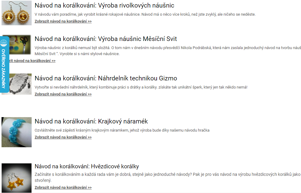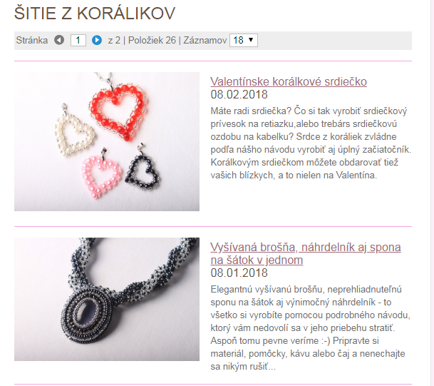 Na tejto stránke nájdete návody na výrobu šperkov od začiatku, čiže od potrebných pomôcok - klieští a korálikov až po návody na výrobu šperkov.