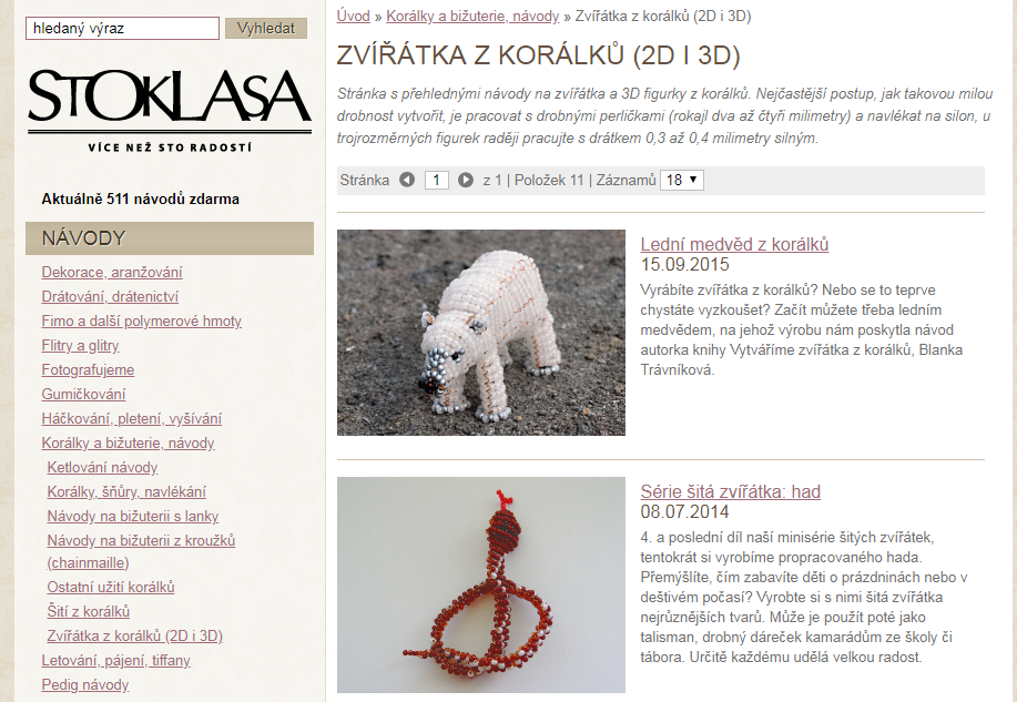 Tu nájdete návody na výrobu rôznych šperkov ako aj ľadového medveďa, či iné zaujímavosti.